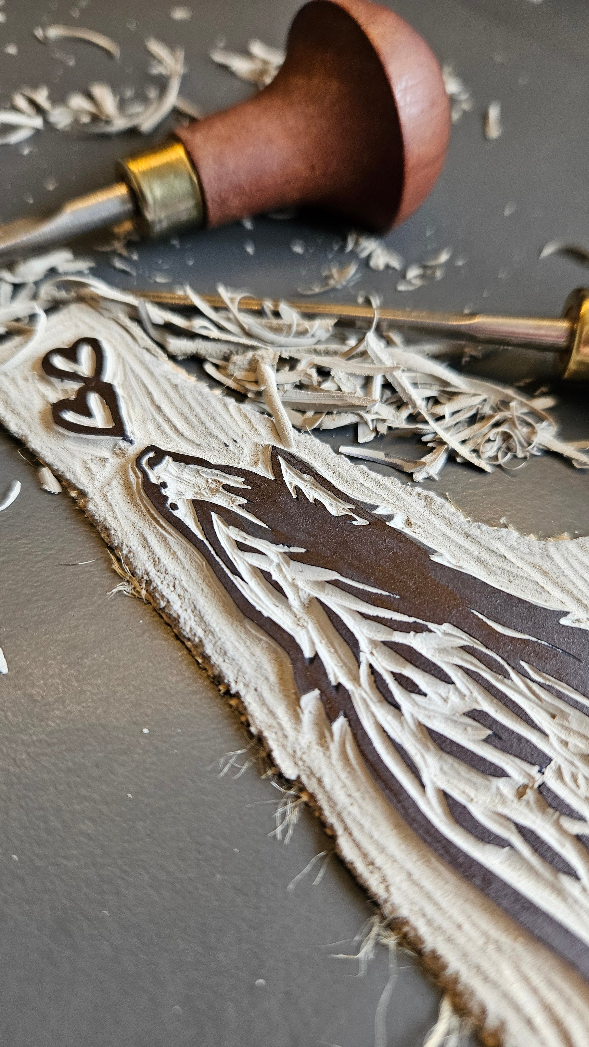 Exemplaire original, imprimé à la main à partir d'une plaque de lino gravée dans mon atelier de Tours.