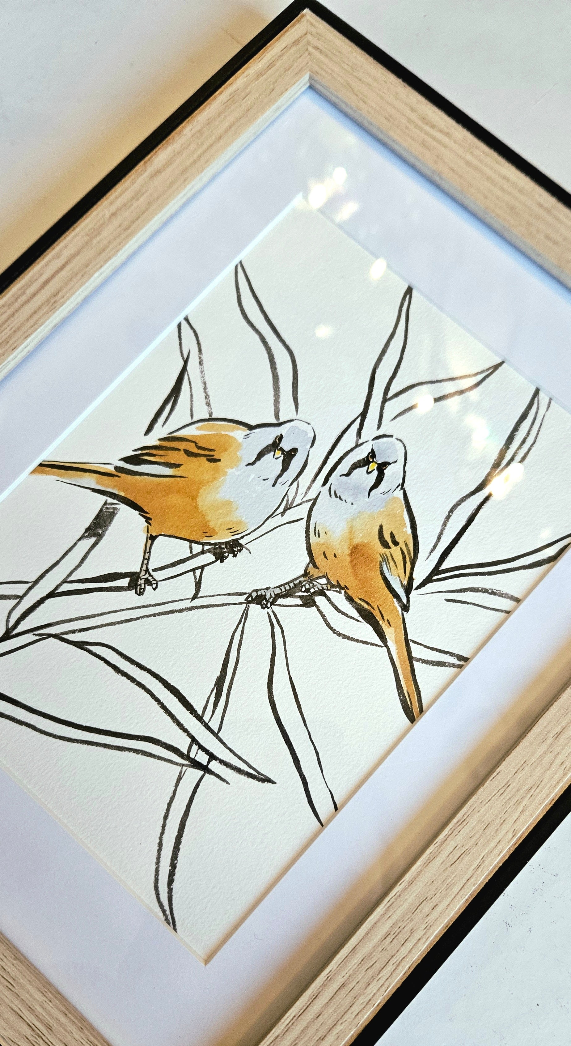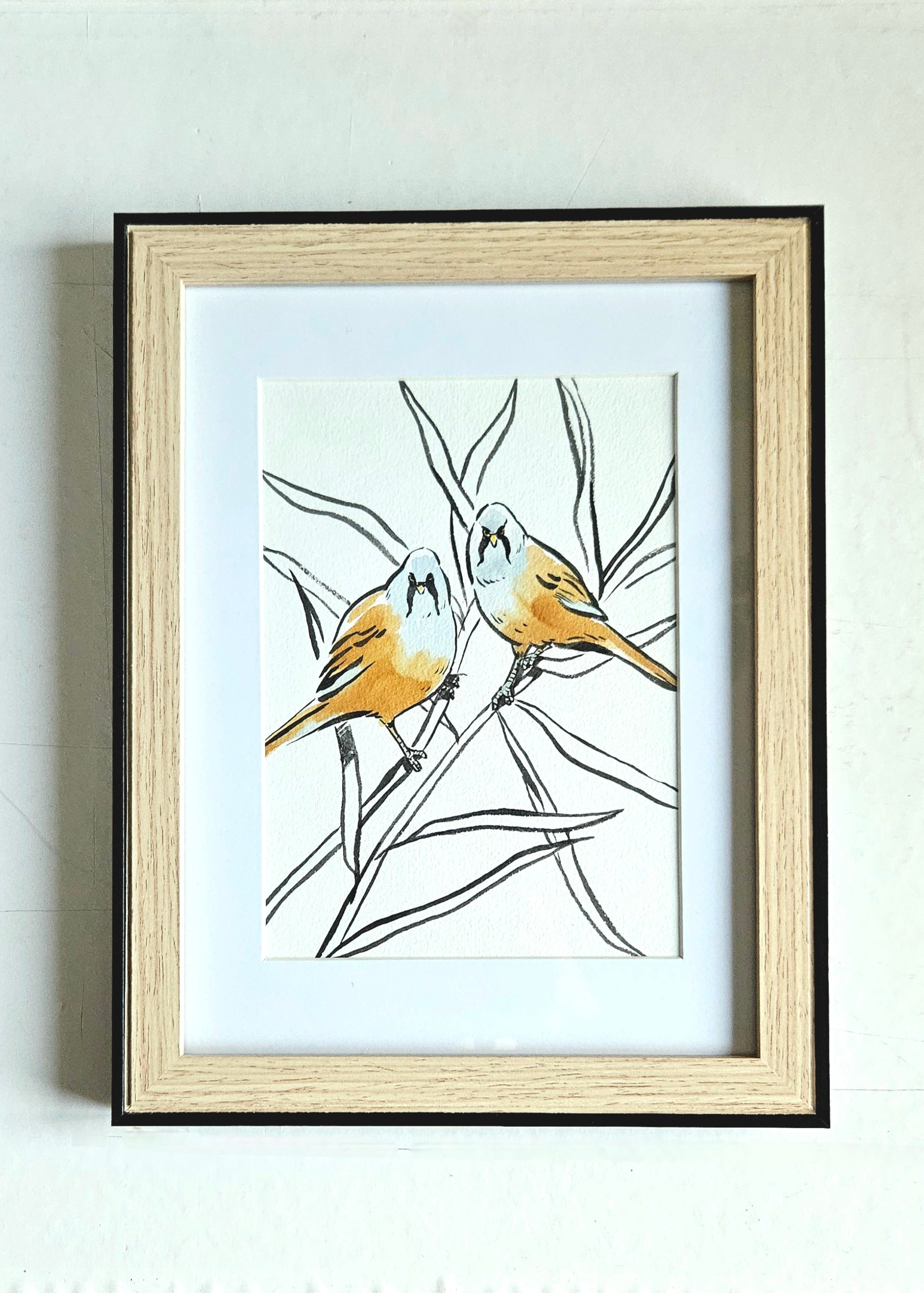 Aquarelle originale encadrée - Les panures à moustache