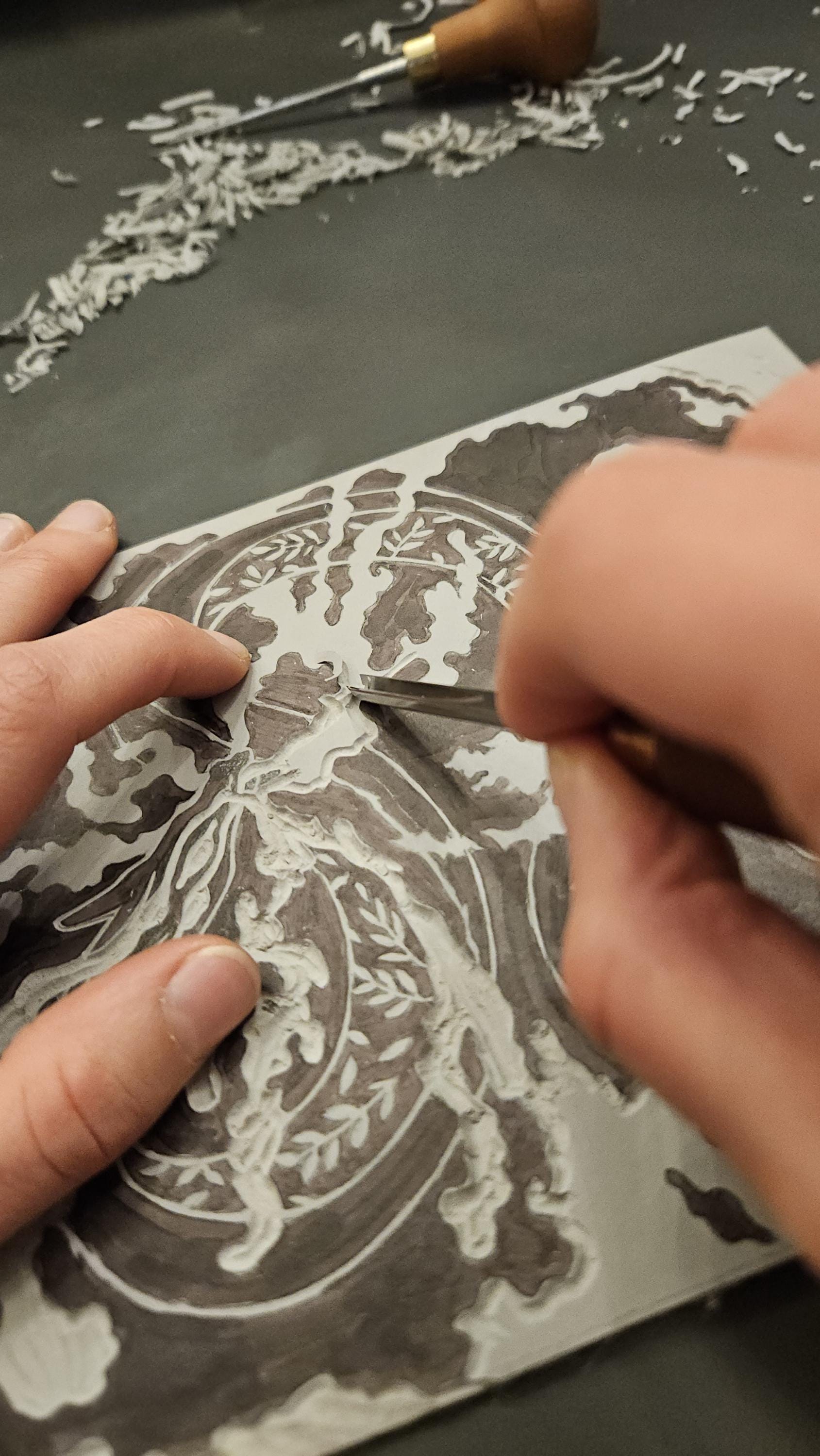 Exemplaire original, imprimé à la main à partir d'une plaque de linogravure dans mon atelier