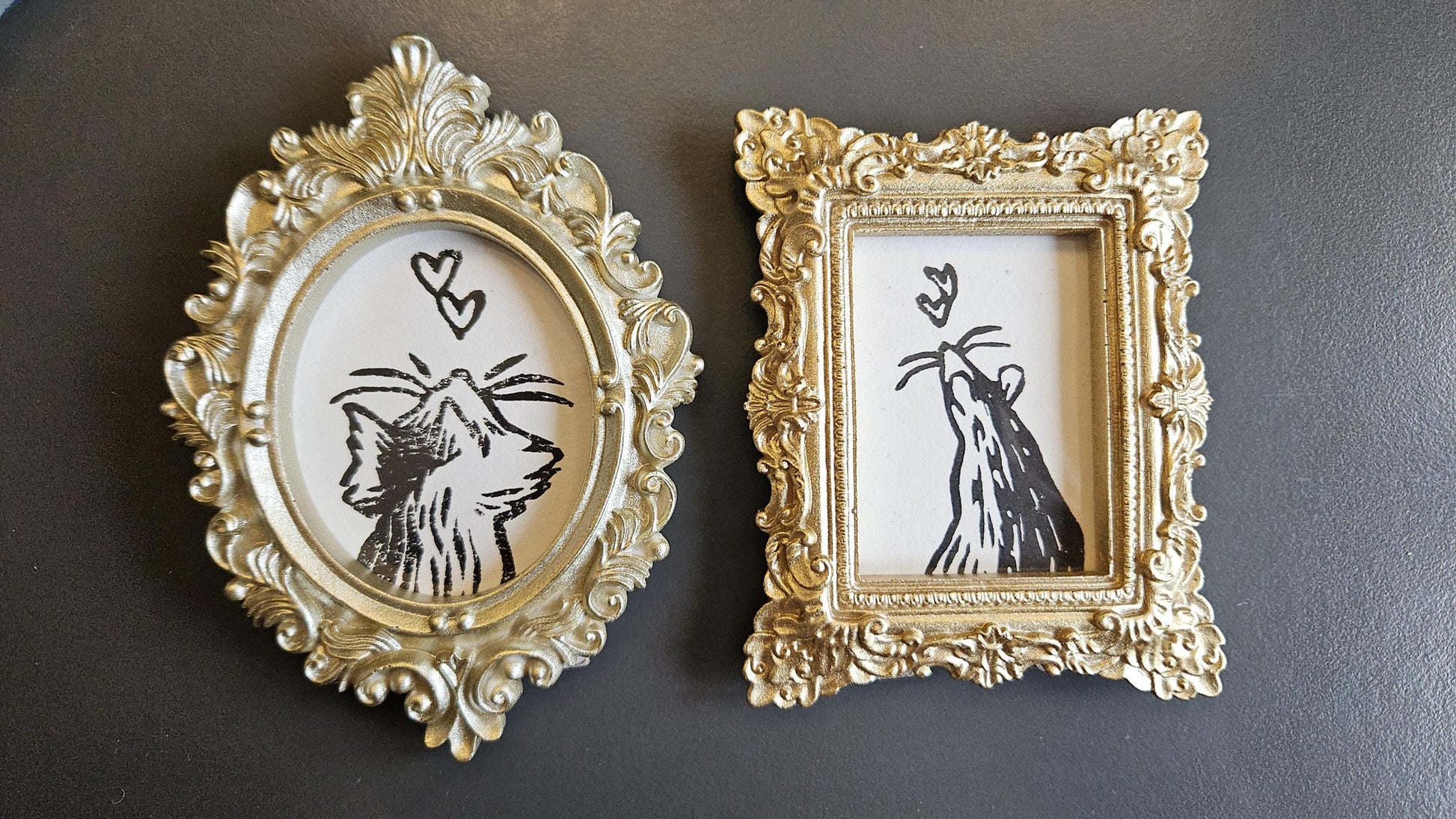Mini cadres dorés linogravure chat