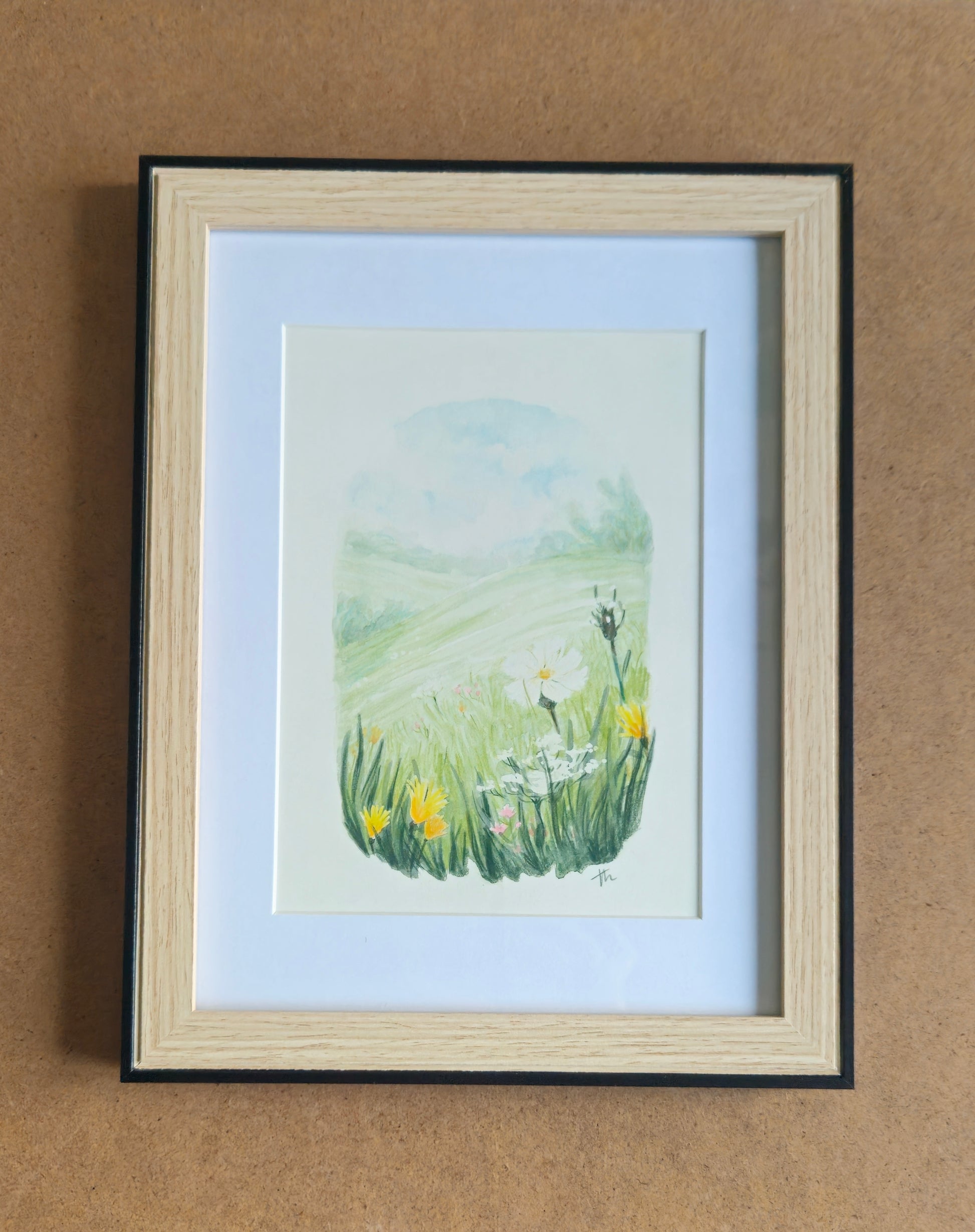 Illustration originale à l’aquarelle – Champ de fleurs printanières